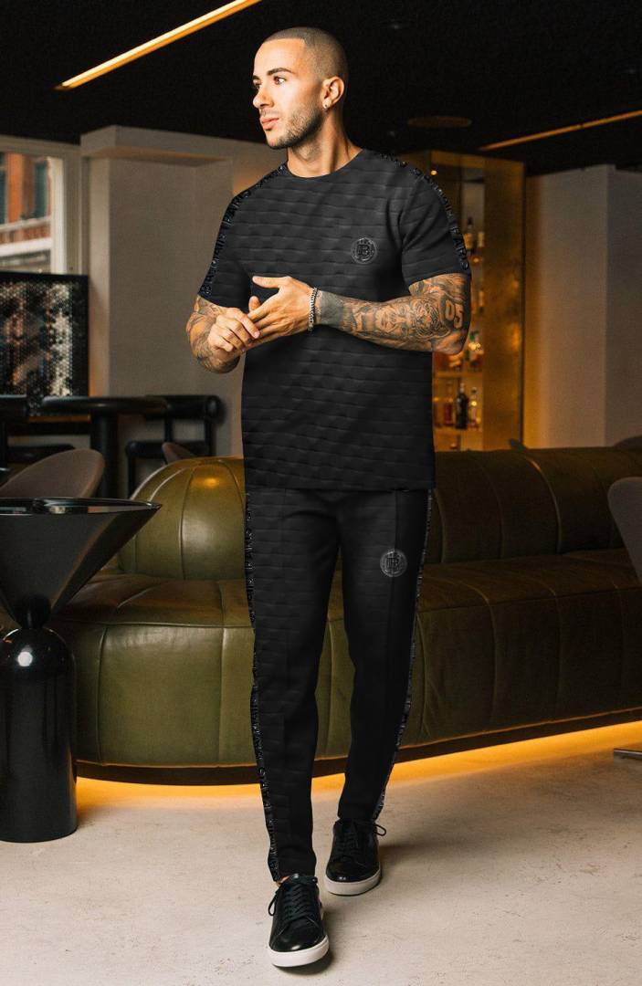 Balmai n Paris Black Imported Embossed Print Premium Track Suit Brand Carry Bag Packing F2942-BL