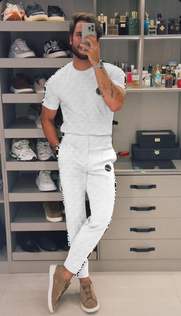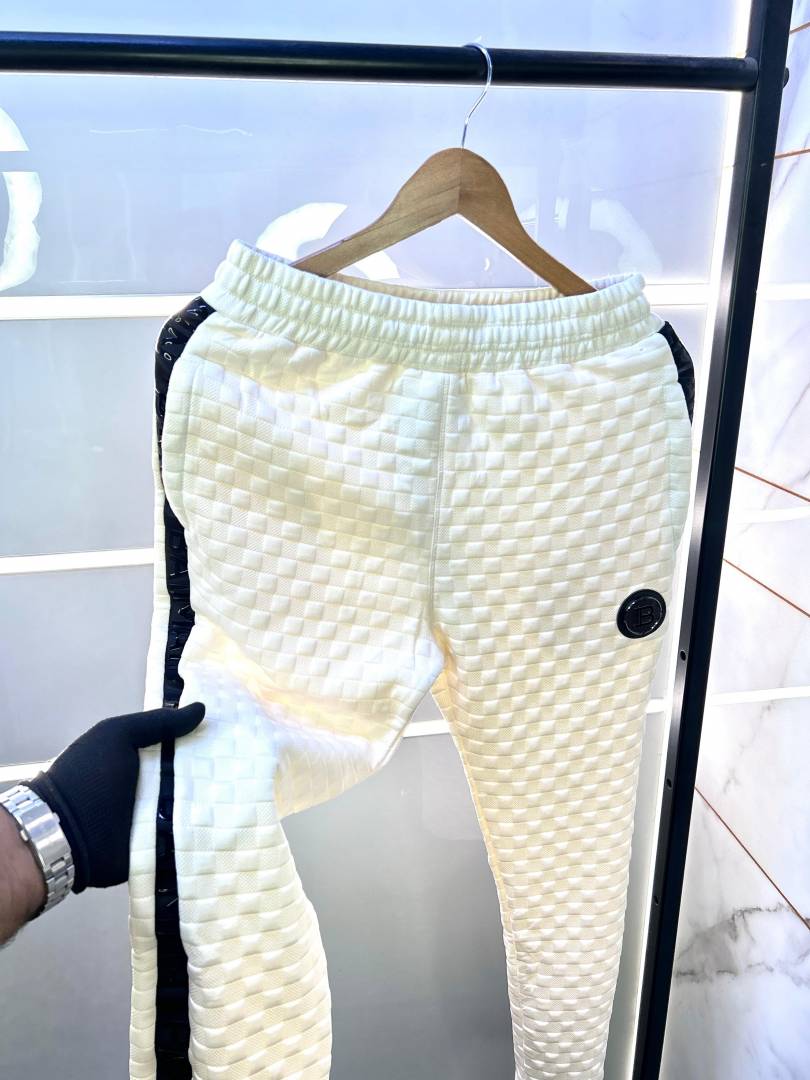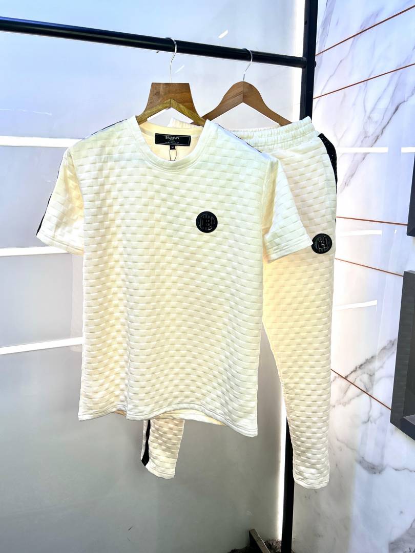 Balmai n Paris White Imported Embossed Print Premium Track Suit Brand Carry Bag Packing F2942-WH