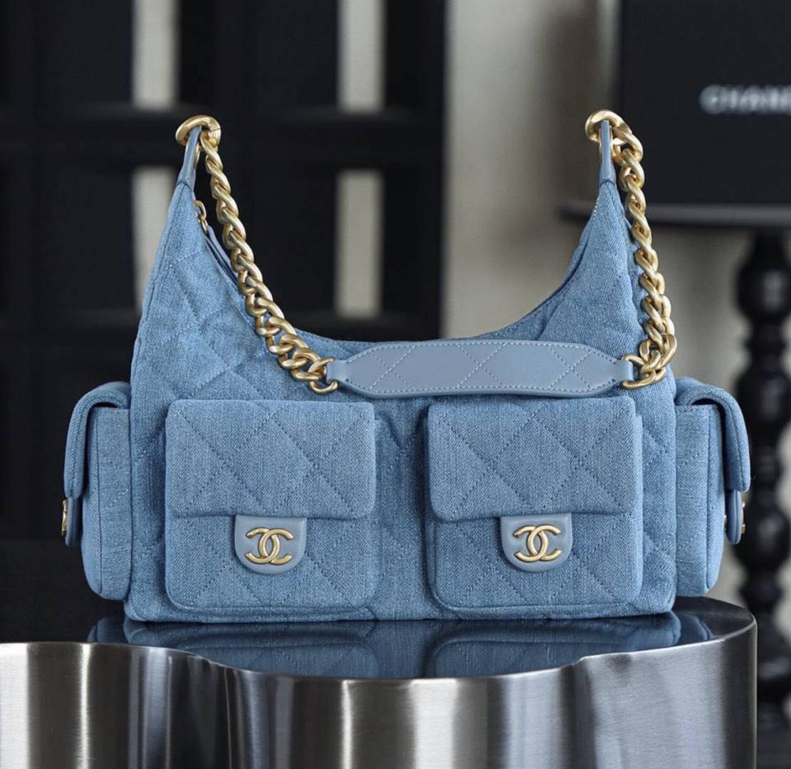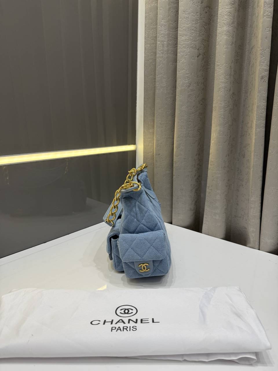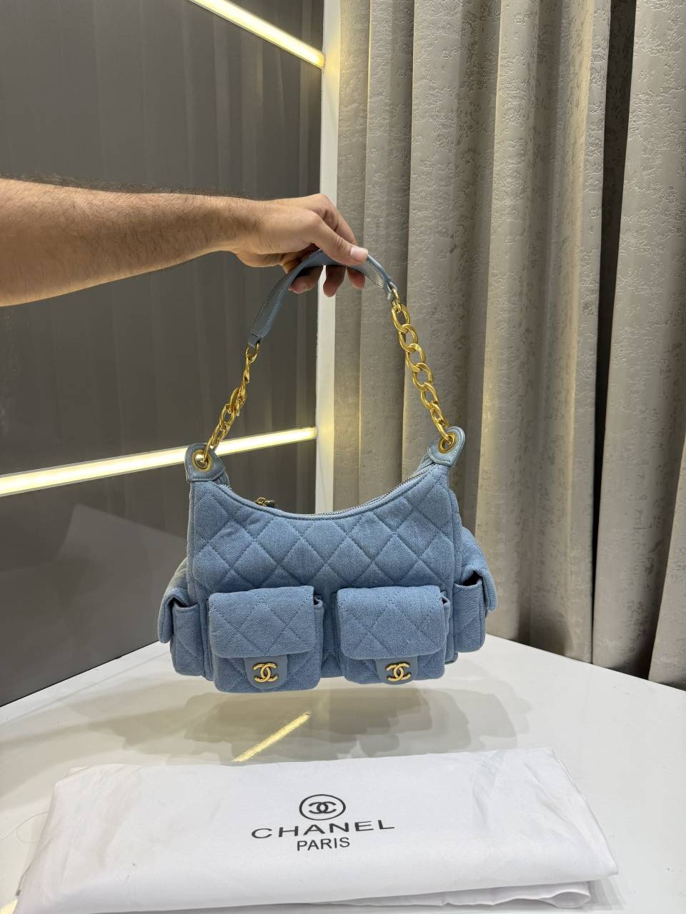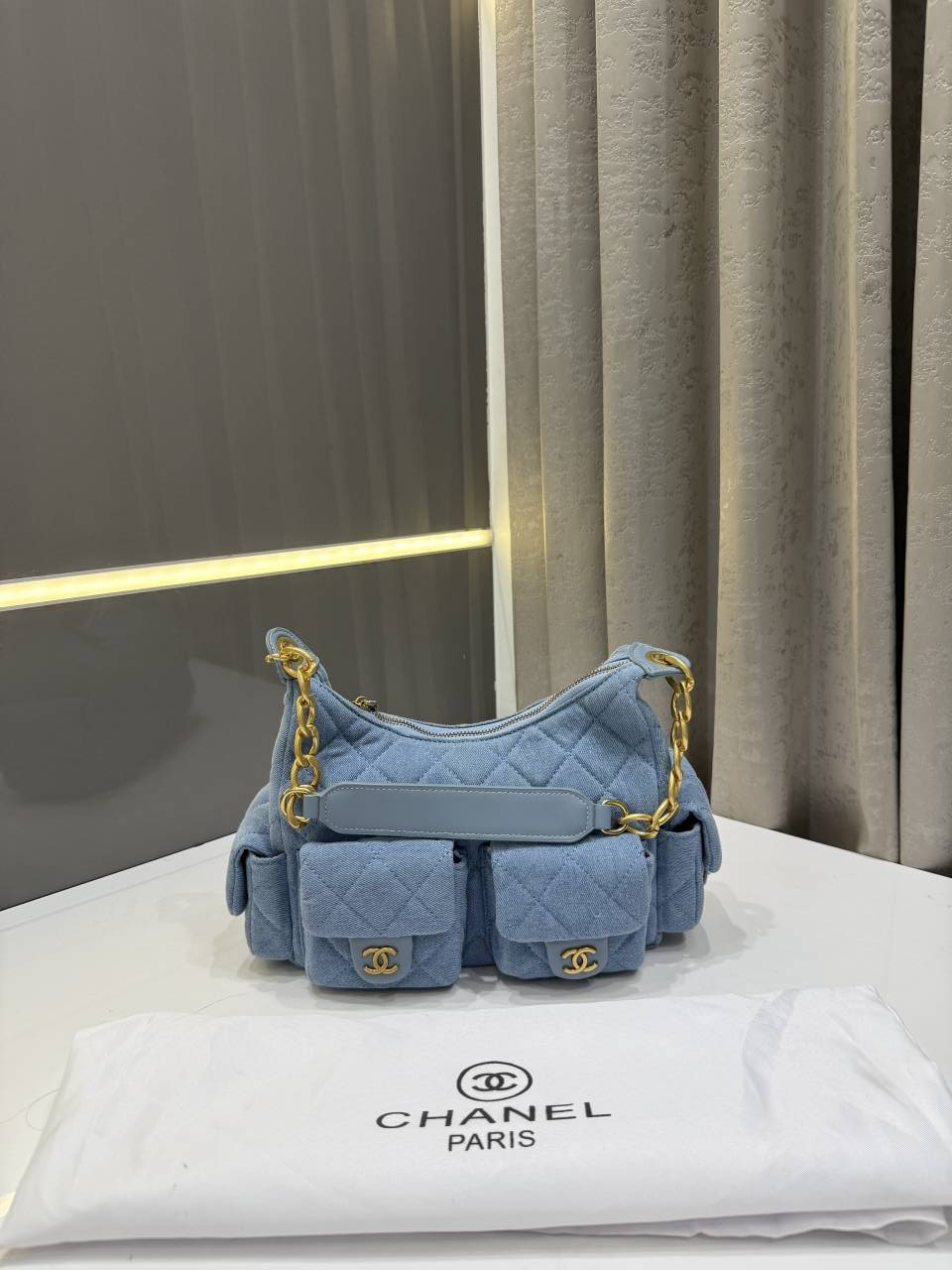 • CHANE.L 25C HOBO BAG WASHED DENIM PREMIUM HAND BAG WITH DUST BAG