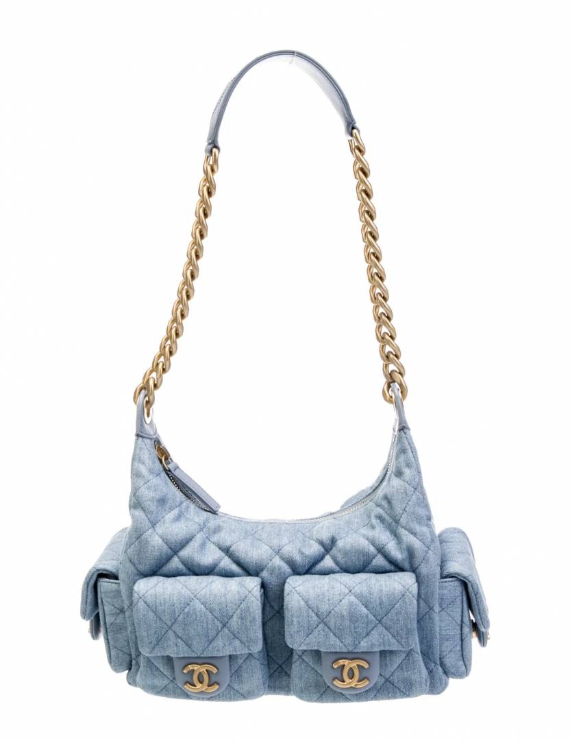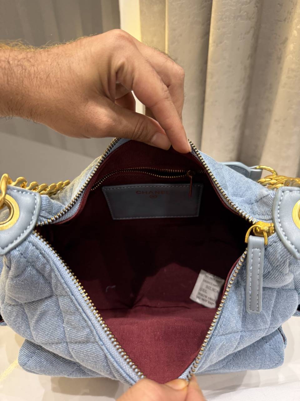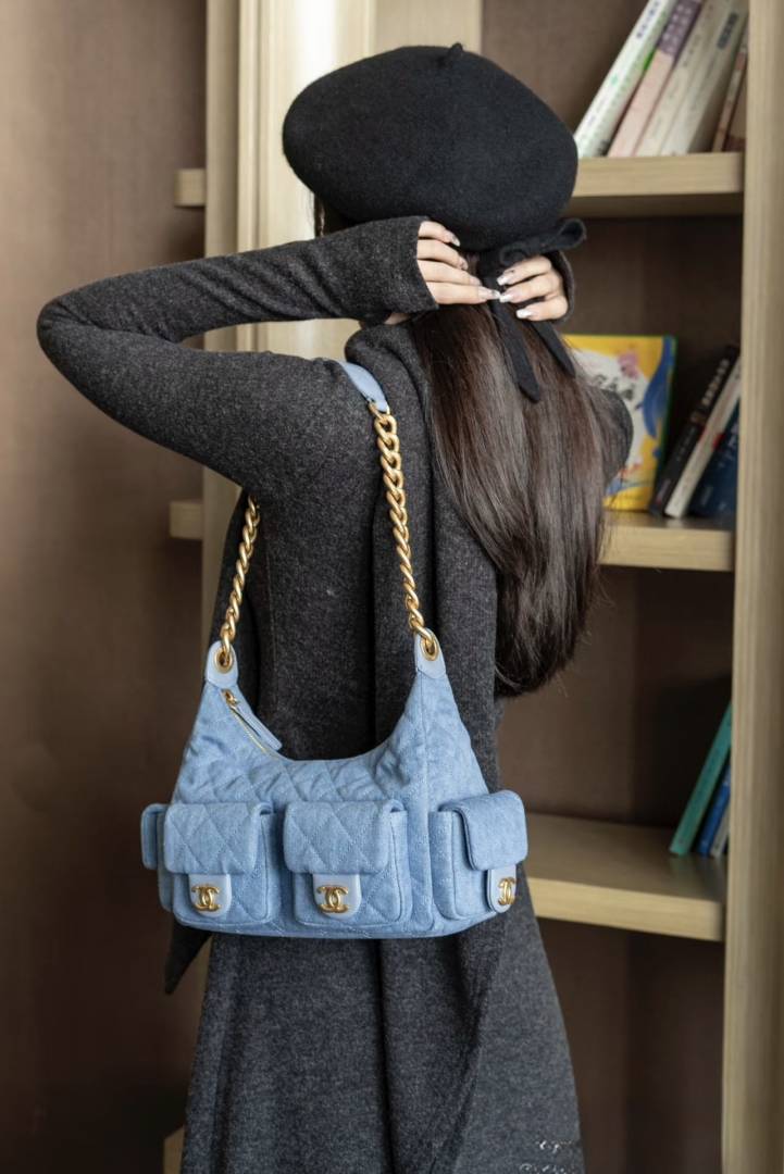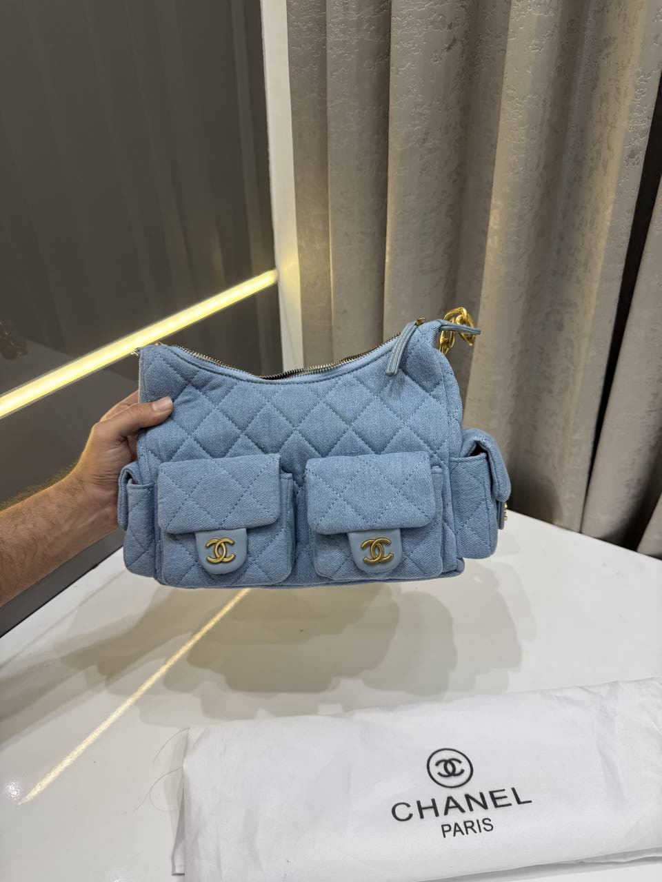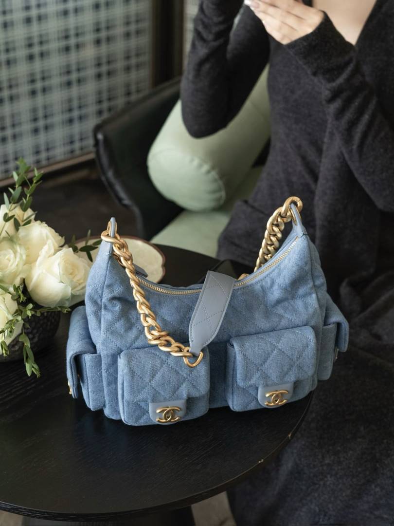 • CHANE.L 25C HOBO BAG WASHED DENIM PREMIUM HAND BAG WITH DUST BAG