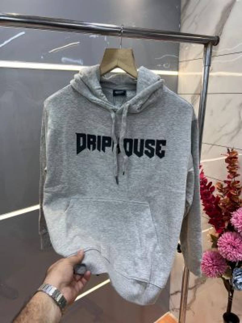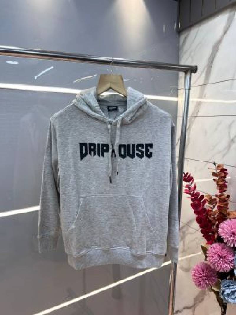 Drip house Grey Imported Cotton Fleece Fabric Front and Back Print Regular fit Hoodie 3080