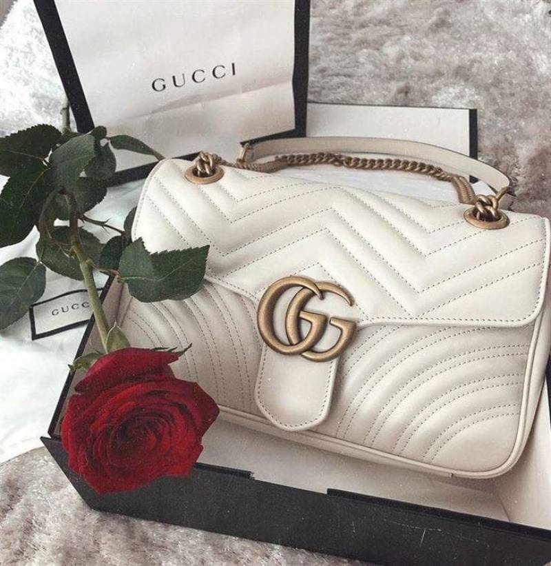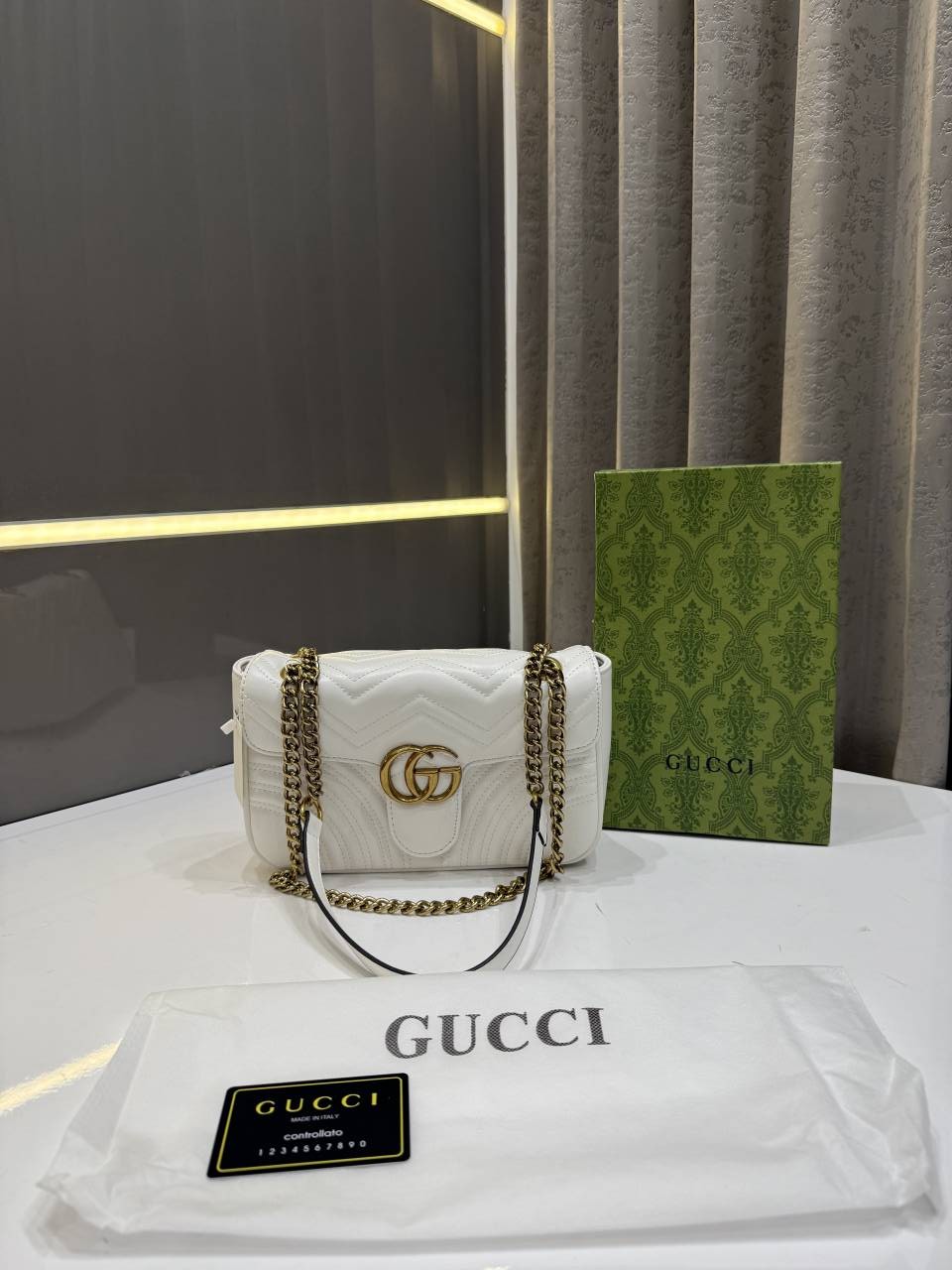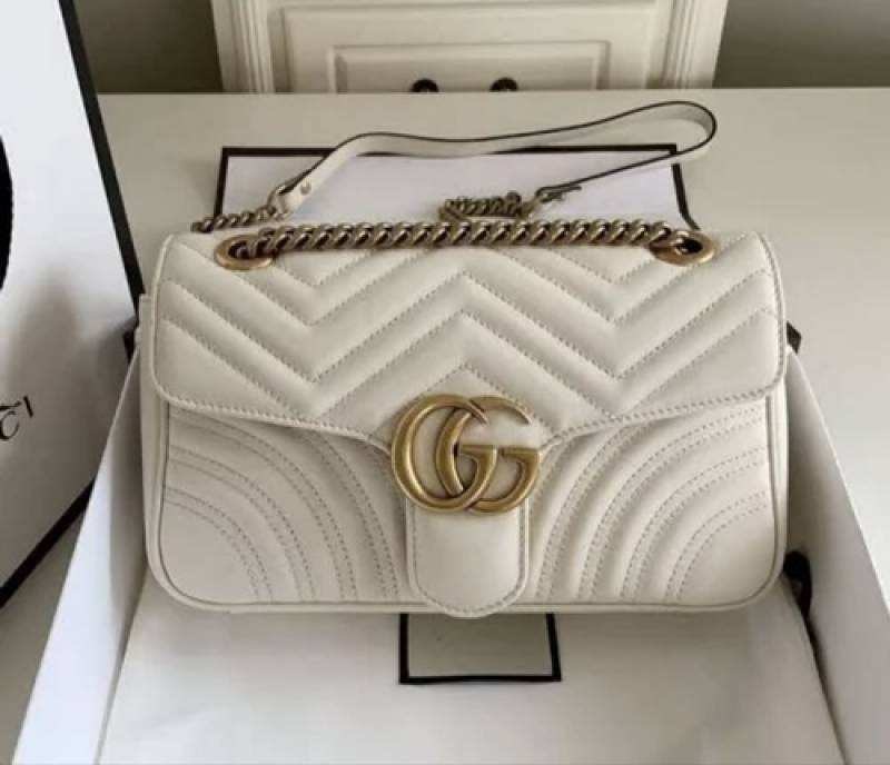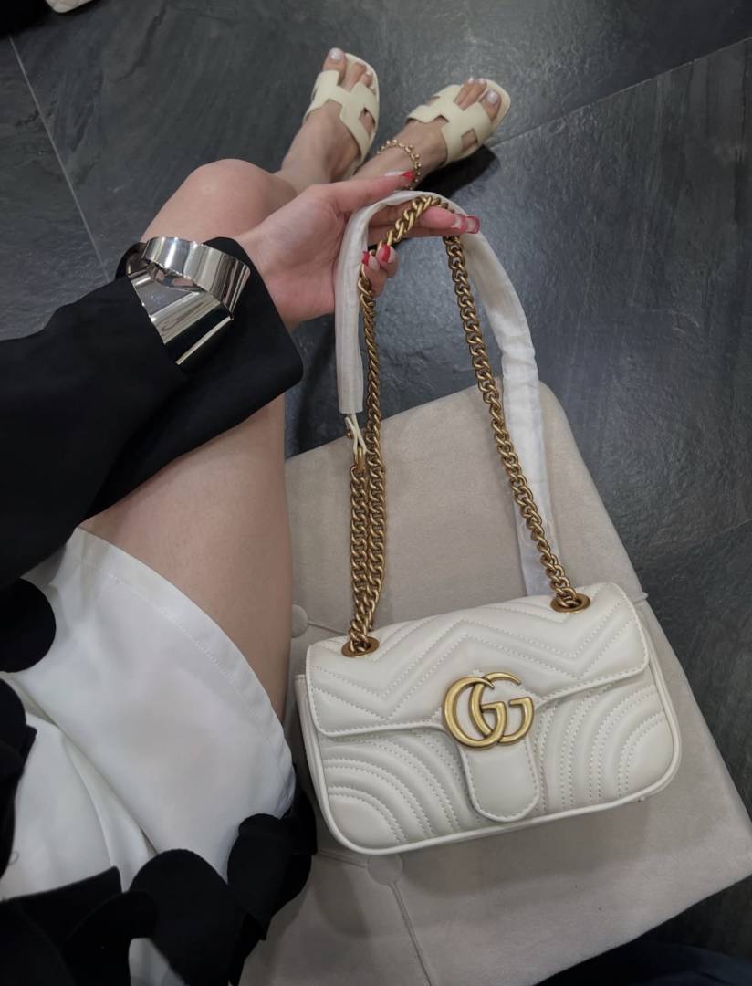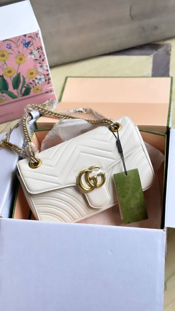 GUCC.I MARMONT GG LOGO WHITE PREMIUM BAG WITH OG BOX & DUST BAG