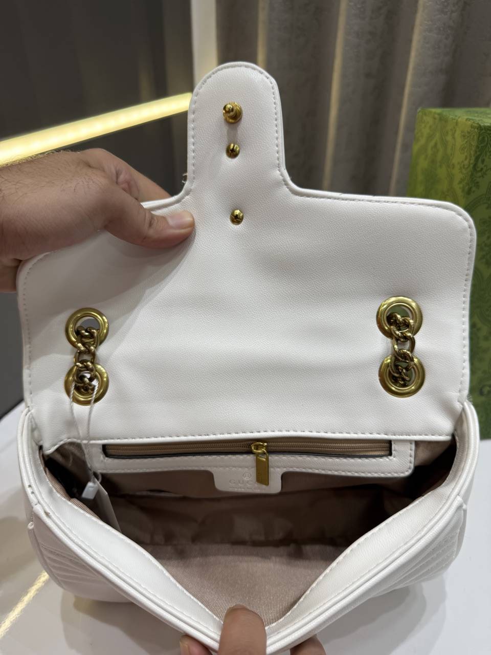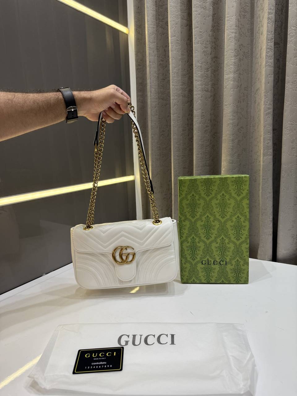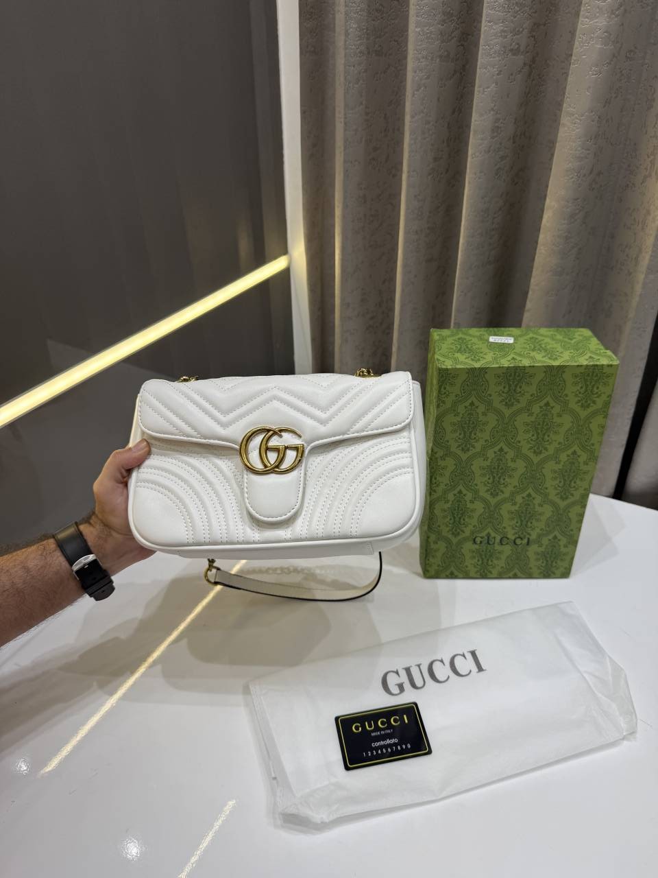 GUCC.I MARMONT GG LOGO WHITE PREMIUM BAG WITH OG BOX & DUST BAG
