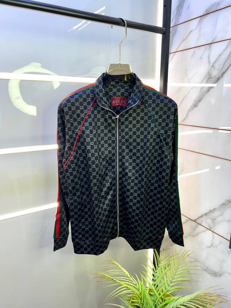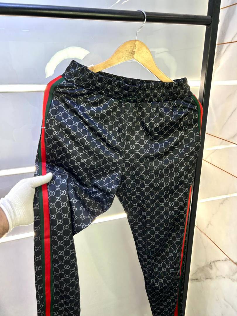 Gucc i Monogram Allover Print Super Premium Black Track Suit With Brand Carry Bag Packing F3379-BL