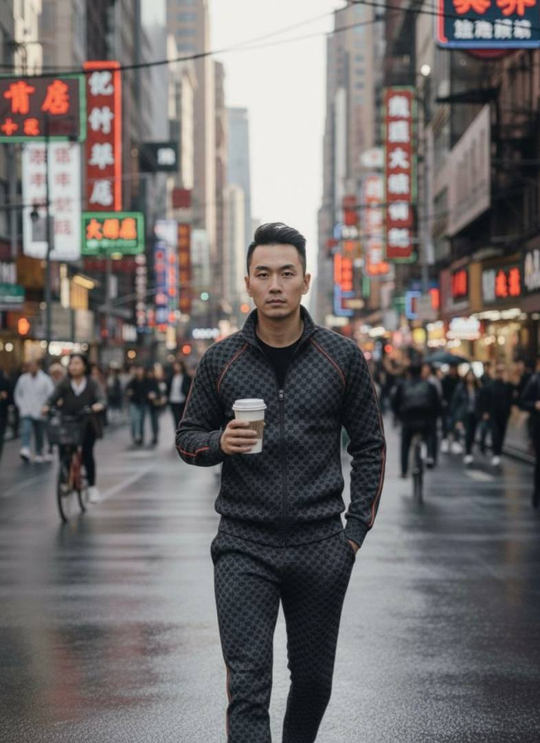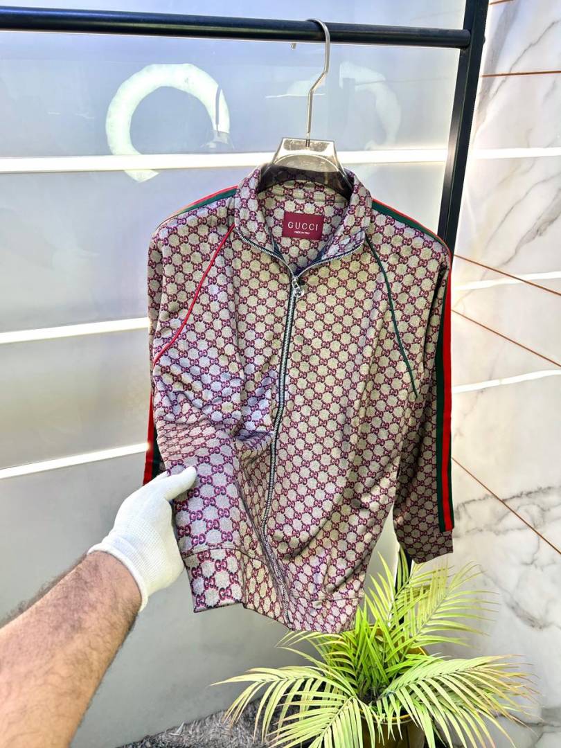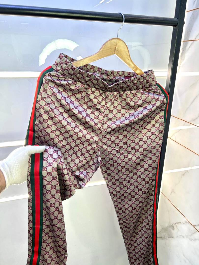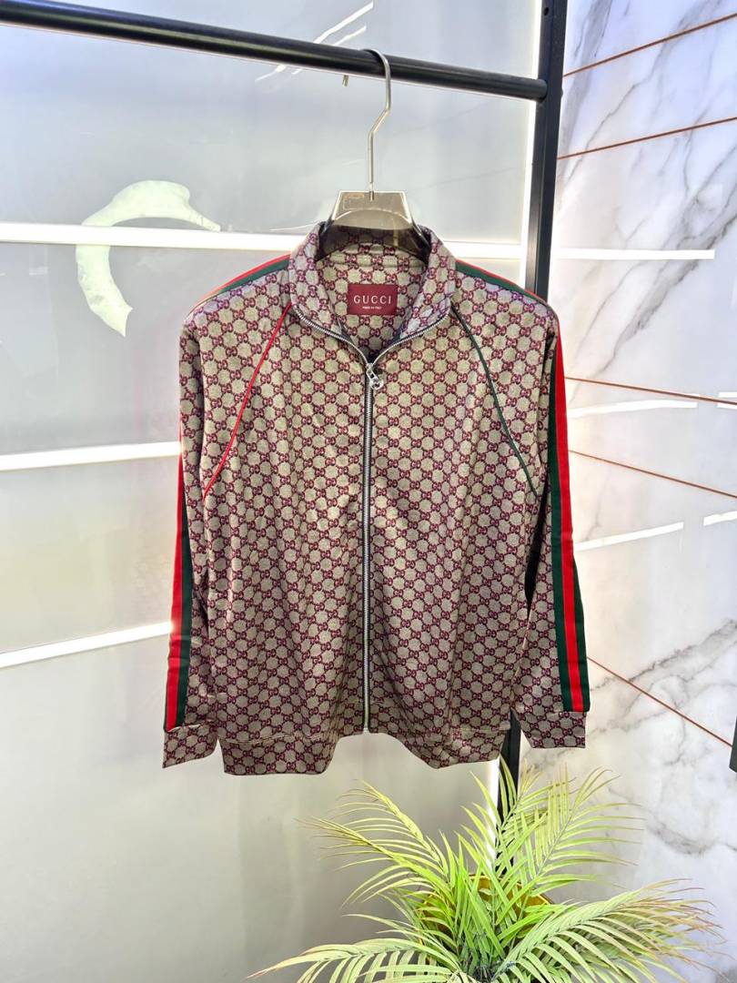 Gucc i Monogram Allover Print Super Premium Grey Track Suit With Brand Carry Bag Packing F3379-GY