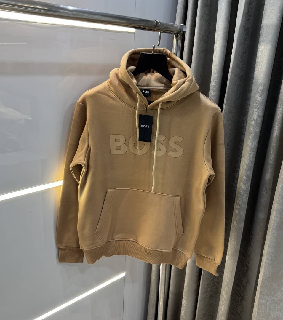 Hugo Boss Beige Logo Print Imported Premium Hoodie