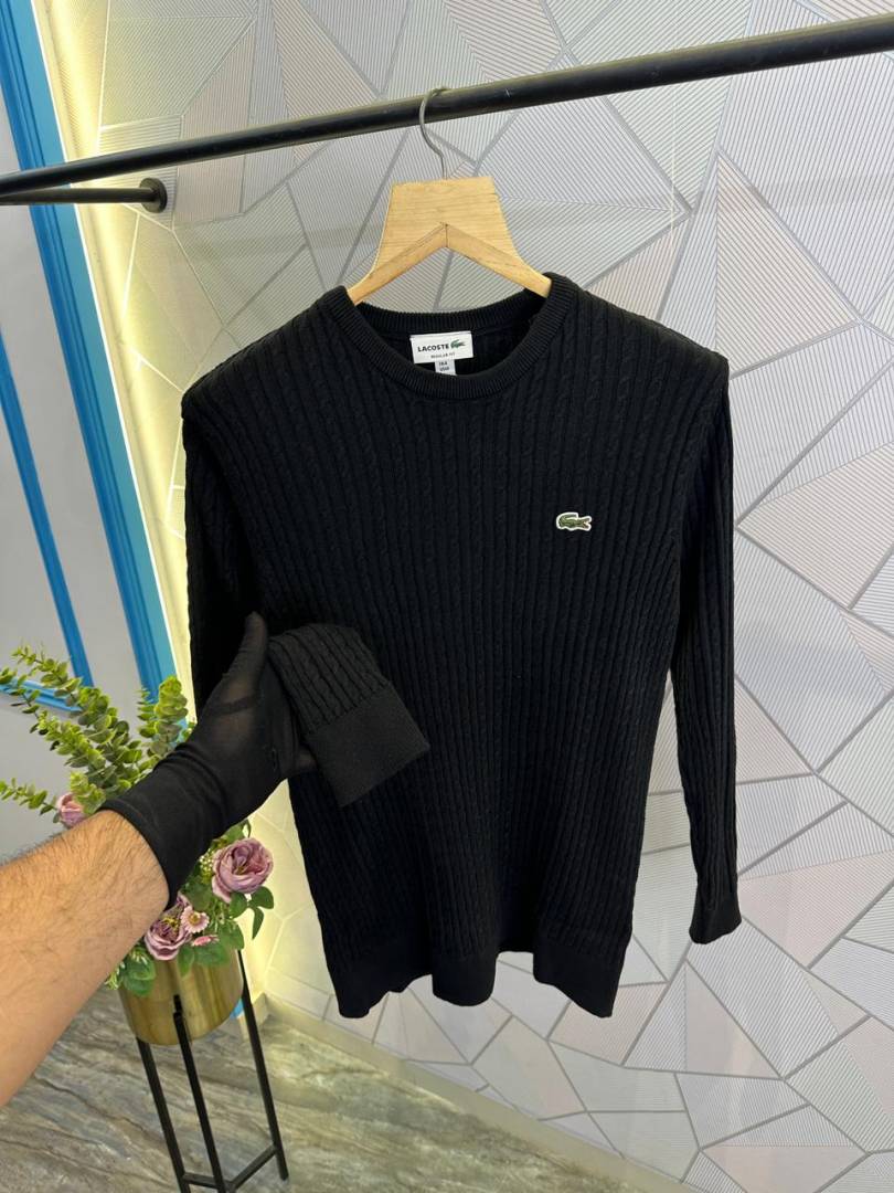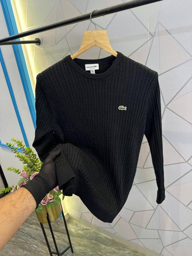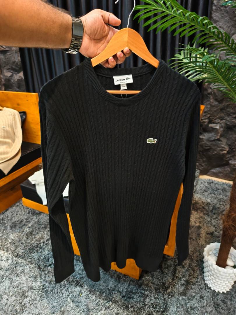 Lacost_E Cable Knite Cotton Sweater Black Offical Article