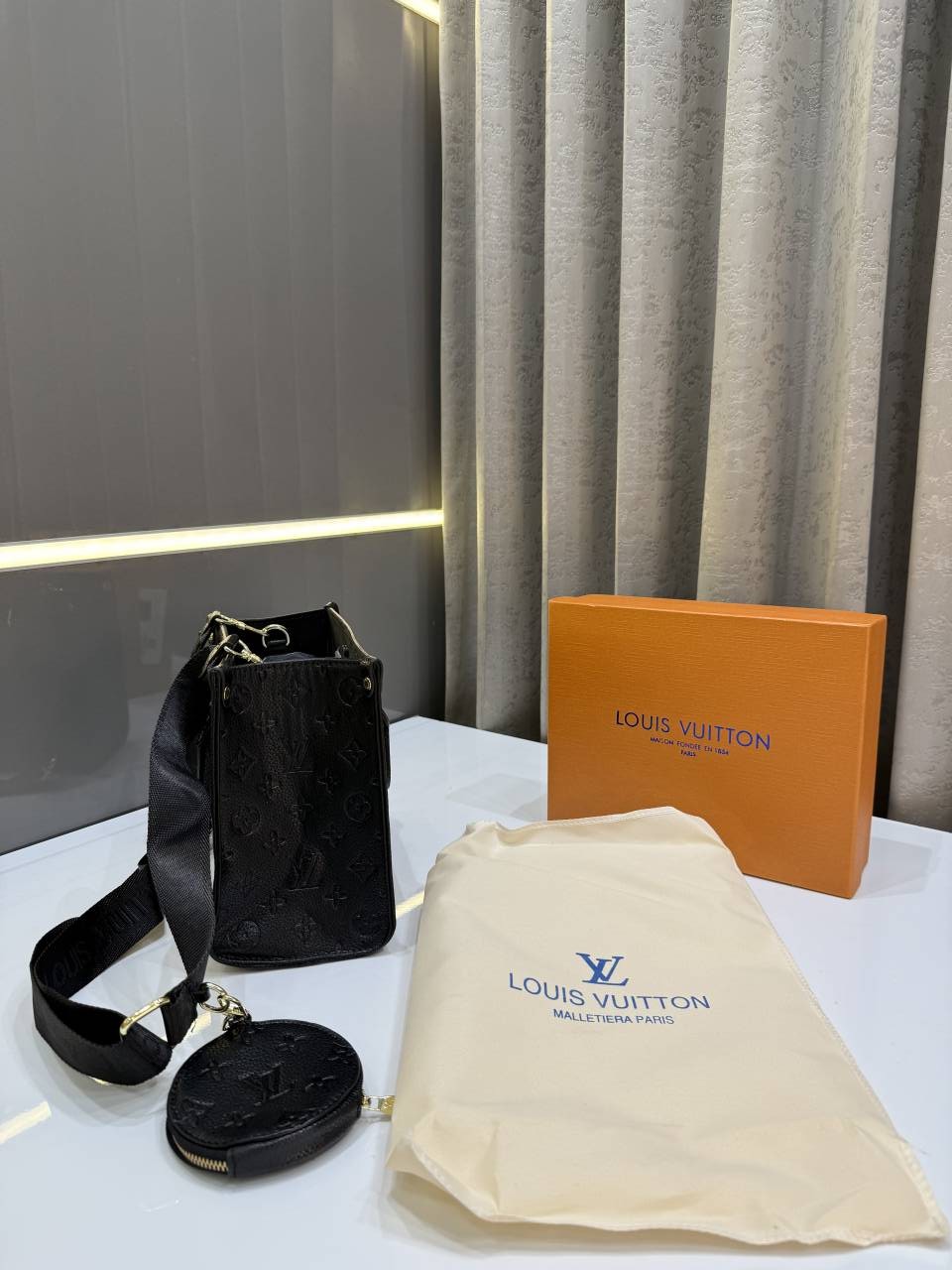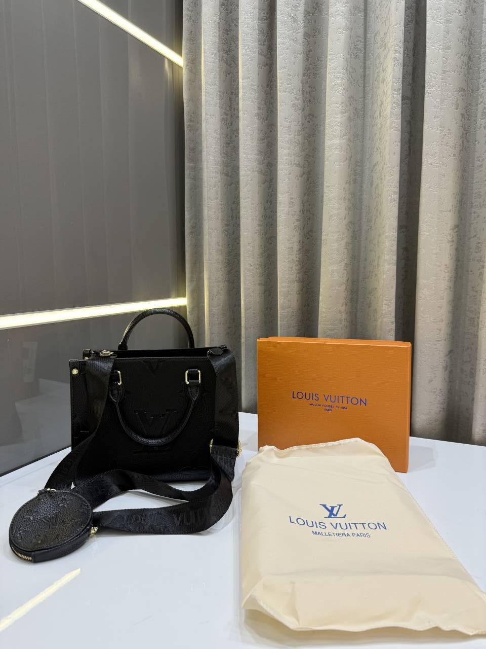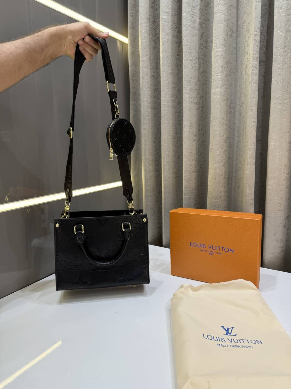 LOUIS VUITTO.N BLACK LEATHER PREMIUM HANDBAG WITH OG BOX