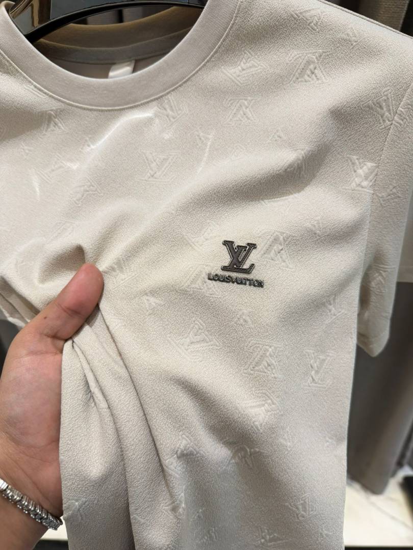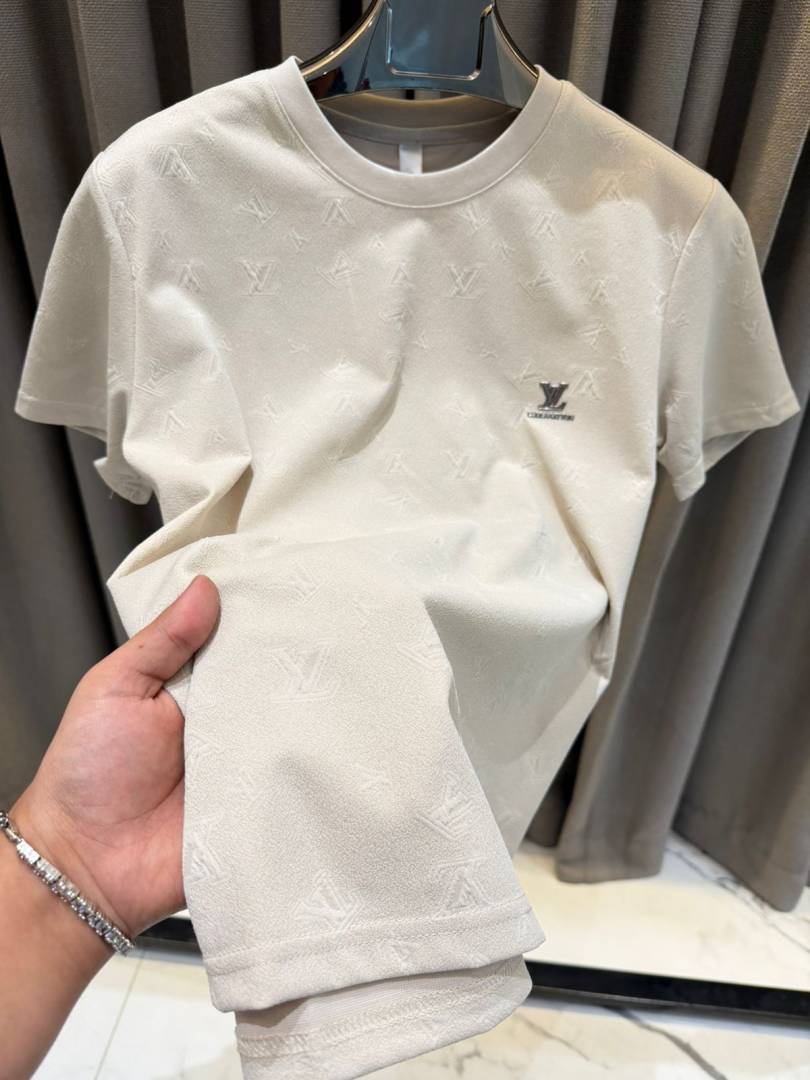 Louis_Vuitton Chest Logo Full Monogram Round Neck T-shirt Beige