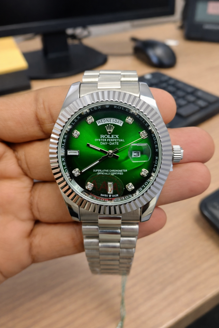 ROLEX DAY DATE SILVER DIAMOND GREEN DIAL