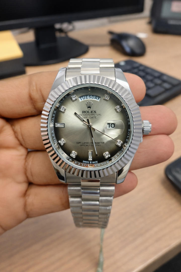 ROLEX DAY DATE SILVER DIAMOND GREY DIAL
